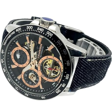 J.HARRISON(ジョン・ハリソン) JH-1972BP JH-1972BP JH - Harrison Men's Automatic Hand-wind Wristwatch Waterproof Analog, Double-Sided Skeleton Sun & Moon Dual Time