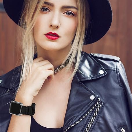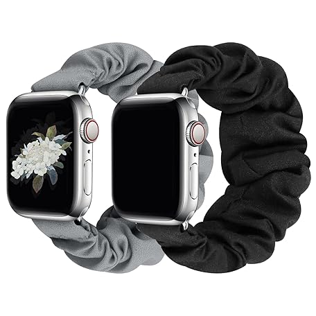 • JIELIELE シュシュApple Watch用バンド 38mm 40mm 41mm 42mm 44mm 45mm 49mm 女性用 かわいいリストバンド ストラップ 伸縮性のあるシュシュバンド iWatch Series 9 8 7 6 5 4 3 2 1 SE用