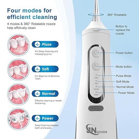 Sản phẩm JNGOODS コードレス水デンタルフロッサー 口腔洗浄器 JNGOODS 310ml 充電式ウォーターフロッサー 歯用 IPX7 防水 4モード ポータブル 口腔洗浄器 ジェットチップ4個付き 旅行用自宅用 (ホワイト) đang được bán với giá ưu đãi là $34.6947 tại nước Nhật.