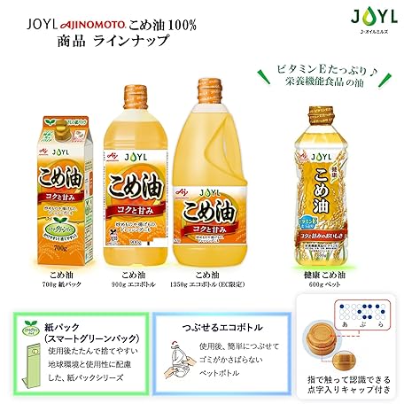 Thông tin sản phẩm JOYL Ajinomoto Rice Oil (100% Rice Oil, Large Capacity, EC Exclusive), J-Oil Mills Pet 4.8 oz (1350 g) x 2 Bottles