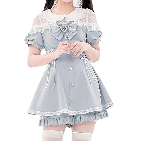 Jundakara Women's One-Piece Ribbon Brooch, Removable, Open Shoulder, Ruffle, Lace-up, Lolita, Yumekawa, Cute, Mine-based Subculture Type, Mass Production, Fashionable, Students, Girls, Clothes, Spring