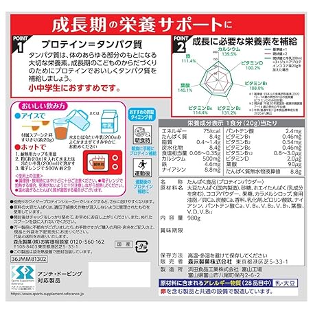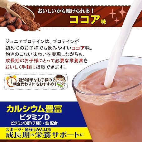 Junior Protein, Cocoa Flavor, 32.8 oz (980 g), Approximately 49 Servings, Cocoa Morinaga Cocoa Formula, Calcium, Vitamins, and Iron Blend, No Synthetic Sweeteners