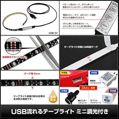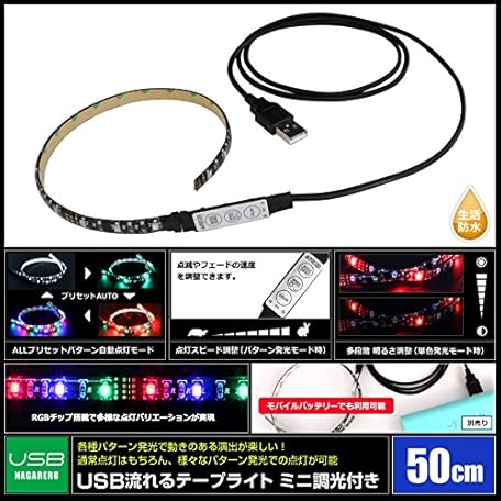 Sản phẩm Kaito Denshi USB Flowing LED Tape Light Waterproof RGB/Colorful (3528) 50cm (Integrated Controller) Black Base đang được bán với giá ưu đãi là $6.1258 tại nước Nhật.