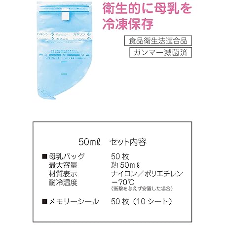 • Kaneson Breast Milk Bag, 1.7 fl oz (50 ml), 50 Pieces, Sterilized, Hygienic, Made in Japan