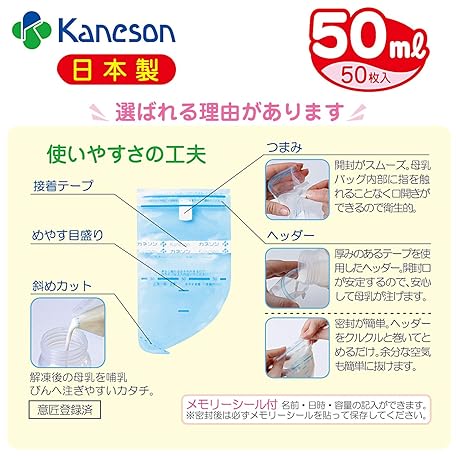 Kaneson Breast Milk Bag, 1.7 fl oz (50 ml), 50 Pieces, Sterilized, Hygienic, Made in Japan