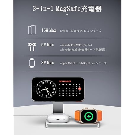 Sản phẩm KEEPRO ワイヤレス充電器 3in1 折り畳み式 Magsafe充電器 同時に3つのデバイス充電 15W/10W/7.5W マルチ充電スタンド マグセーフ充·電器 マグネット式 iPhone/Apple Watch/Airpodsに対応 無線充·電器 出張、旅行用 携帯充·電器【20W PD3.0アダプター付属】ホワイト đang được bán với giá ưu đãi là $44.4611 tại nước Nhật.