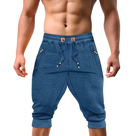KEFITEVD Men's Half Pants, Sports Pants, 3/4 Length Pants, Training Shorts, Sweat Pants, Sweat Pants, Sweat Pants, Sweat Pants, Sweatpants, Cotton, Jogger Pants, Fitness, Gym, Sweatpants, Summer