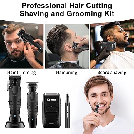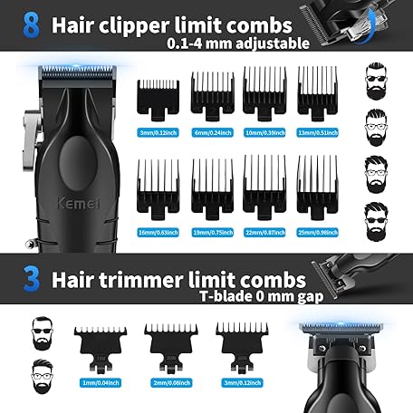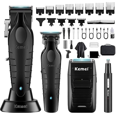 KEMEI Professional Hair Clippers for Men Cordless Barber Clippers Beard Trimmer Foil Shaver Nose Eyebrow Ear Trimmer Set USB Charging Fully Electric Hair Cutting Kit with 11 Guide Combs