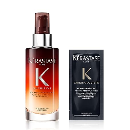 Kerastase Magic Night Serum R 3.1 fl oz (90 ml) Night Hair Serum, Neutral Puffy Hair Care, Sample Included (Chronologist Shampoo, 0.3 fl oz (10 ml)