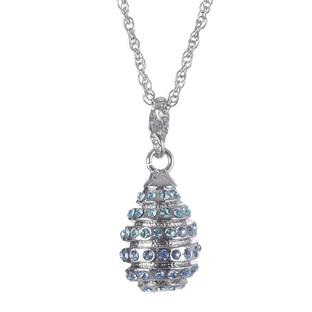 Keren Kopal Silver Egg Pendant Necklace Teal Swarovski Crystal Decorated Fabrige Style Love Gift for Wife Special Chic Gift for Mom
