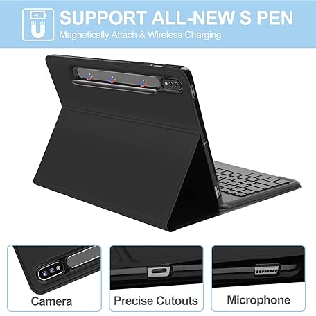 Thông tin sản phẩm Keyboard Case for Samsung Galaxy Tab S8/S7 11 inch, 7 Colors Backlight, Magnetic Detachable Wireless Bluetooth Keyboard Protective Stand Tablet Cover with S Pen Holder, Auto Sleep/Wake