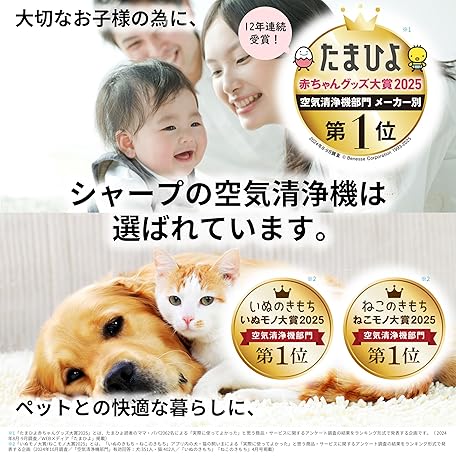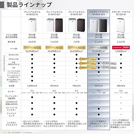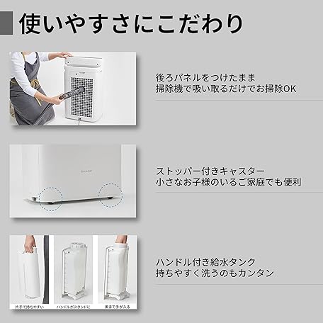 • KI-SS50-W Sharp Humidified Air Purifier, White Plasmacluster 25,000 Air Purifier, 7.1 sq ft (23 tatami), Tank Capacity: Approx. 7.9 gal (2.7 L), Humidification Capacity: 13.6 fl oz (600 mL/h)