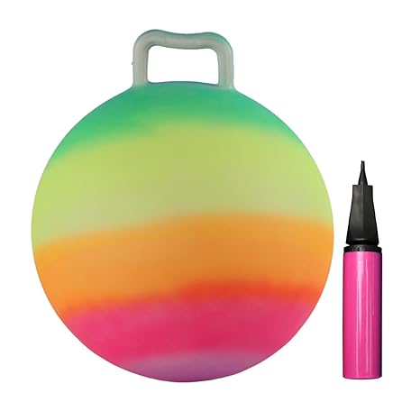 Kids Jumping Ball Toy Outdoor Garden Bounce Exercise Rainbow 18" Colorful with Handle and Air Pump Sports Hopping Ball