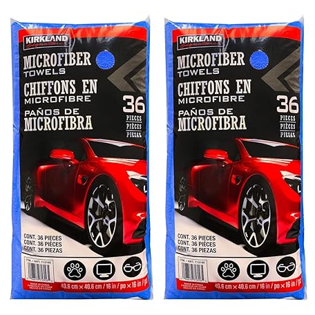 【KIRKLAND】カークランド マイクロファイバー タオル 2パック×36枚 ブルー 青 1397553 厚手 車用 洗車 拭き上げ クロス 内側 外側 (2, ブルー) [並行輸入品]