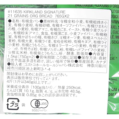 • Kirkland Organic Bread, 21 Grain Organic Bread, 26.8 oz (765 g), Costco (Set of 2)