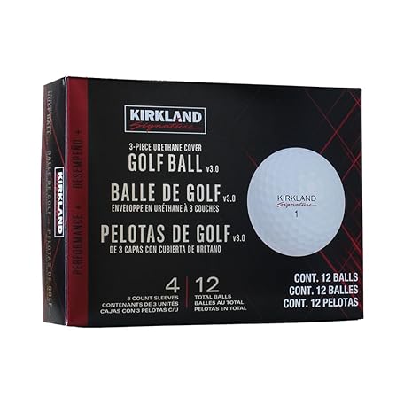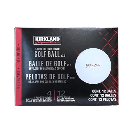 • KIRKLAND Signature Performance + V3 Golf Balls 3 Piece Urethane Cover Balls, Dozen (12 Pack)