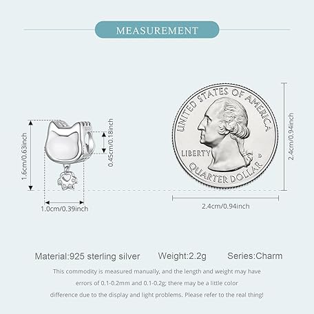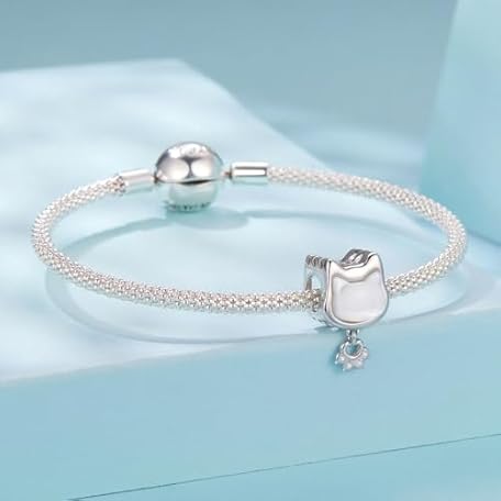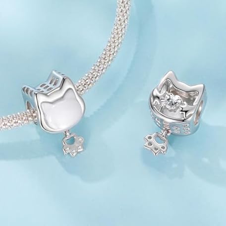 Kitty Charm 925 Sterling Silver Charm for Pandora Bracelet, Women Gift