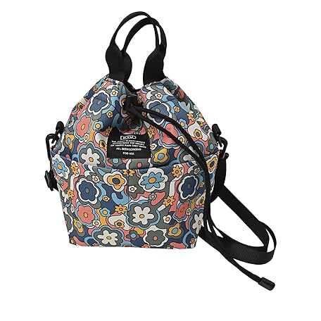 Kiu K438-523 600D Pocket Full Mini Bag, 600D Pocket, Waterproof, Water Repellent, Shoulder Bag, Handbag, 2-Way Pocket, Stylish, Casual, Unisex, Unisex, Happy Flower