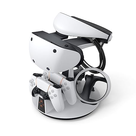 KIWI design D2 3-in-1 Controller Charging Station for PSVR2 and PS5, VR Display Stand with LED Charging Indicator