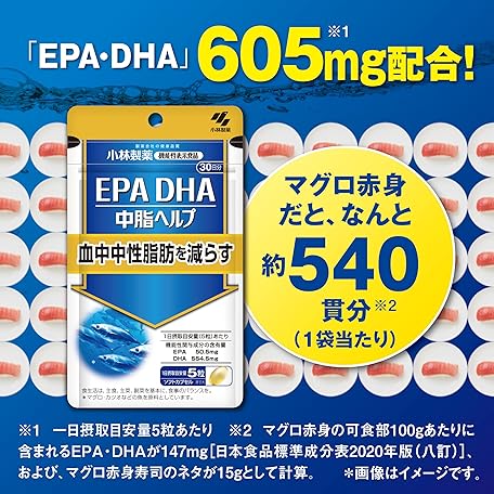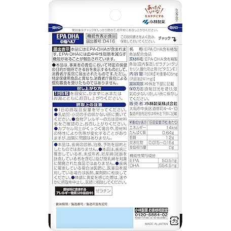 Thông tin sản phẩm Kobayashi Pharmaceutical Nutritional Supplement, Food with Functional Display EPA DHA Supplement, Blood Neutral Fat, EPA Fish Omega-3 Fatty Acid Supplement, 150 Tablets / 30 Day Supply, Medium Fat