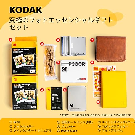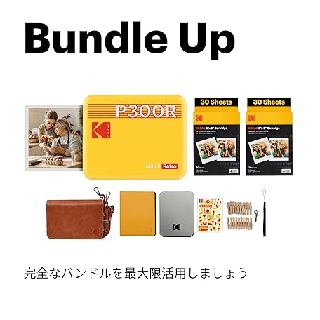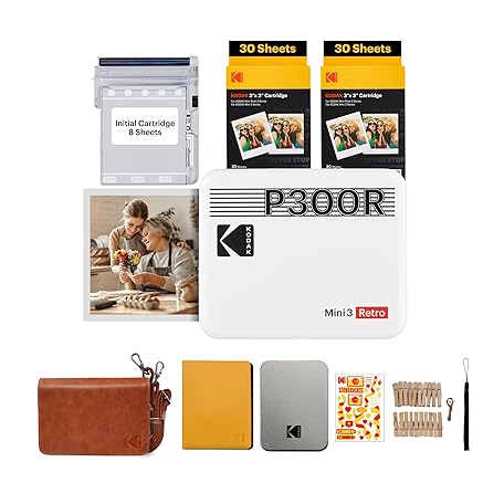 • Kodak KODAK Mini 3 Retro 4PASS Portable Photo Printer (3"x3") + 68 Pieces Gift Bundle, White