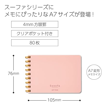 Thông tin sản phẩm Kokuyo Soft Ring Memo Sooofa A7 Transformation 0.2 inch (4 mm) Square, 80 Pieces, Peach Memo SV778S4-P