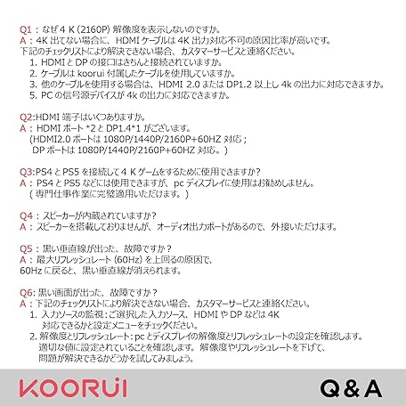 Thông tin sản phẩm KOORUI 27インチ モニター 4k ディスプレイ IPS非光沢 pcモニター HDR10/60Hz/ブルーライト軽減/スリムベゼルス/HDMI/DP/VESA対応