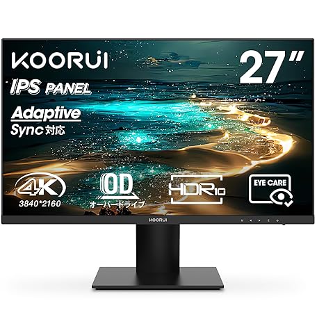 • KOORUI 27インチ モニター 4k ディスプレイ IPS非光沢 pcモニター HDR10/60Hz/ブルーライト軽減/スリムベゼルス/HDMI/DP/VESA対応