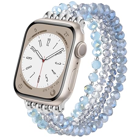 KOREDA ビーズブレスレット Apple Watch用バンド 38mm 40mm 41mm 42mm 44mm 45mm 46mm Series 10 9 8 7 SE 6 5 4 レディース ファッション キュート ハンドメイド 伸縮性 パールビーズ ストレッチストラップ iWatchバンド3/2/1用