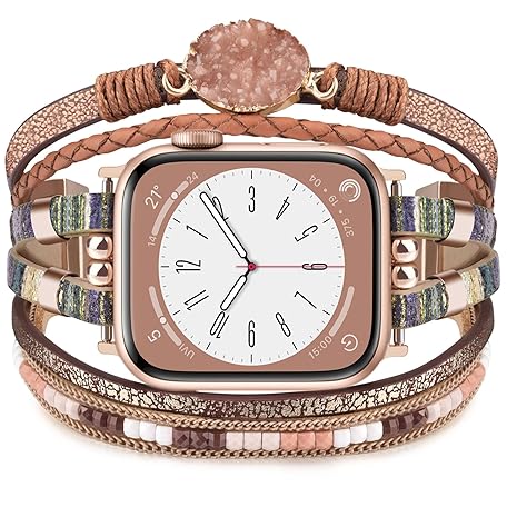 KOREDA ボーホーレザーブレスレット Apple Watchバンド 38mm 40mm 41mm 42mm 44mm 45mm Series 9 8 7 SEレディース用 ハンドメイド 多層ラップジュエリー Apple Watchストラップ iWatchシリーズ6/5/4/3/2/1用, 42mm/44mm/45mm/46mm(Series 10), レザー, 宝石なし
