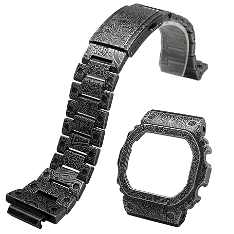 • Korlexchi MODキット メタルウォッチバンドとウォッチケース メンズ カシオ DW5600 GW-B5600に対応 ブレスレットと腕時計ベゼル G-SHOCK GW-M5610 G-5600E用 316ステンレススチール レトロ 3Dカービング