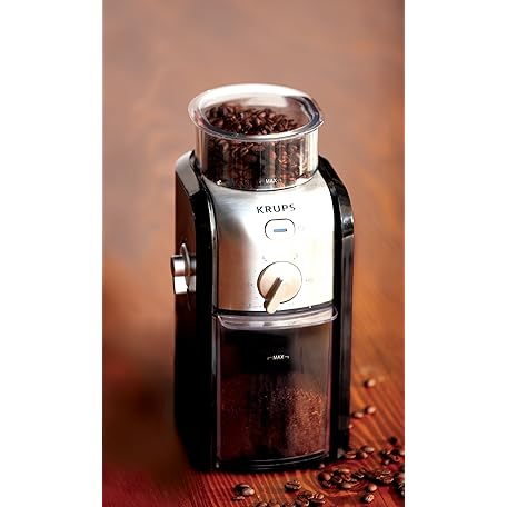 Thông tin sản phẩm KRUPS GVX212 Coffee Grinder with Grind Size and Cup Selection and Stainless Steel Flat Burr Grinder, 8-Ounce, Black by KRUPS