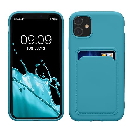 kwmobile Smartphone Case Compatible with Apple iPhone 11 Case - With Card Holder Soft TPU Silicone Light Blue Matte