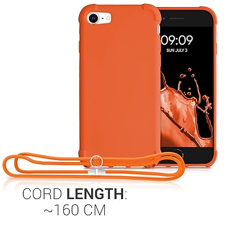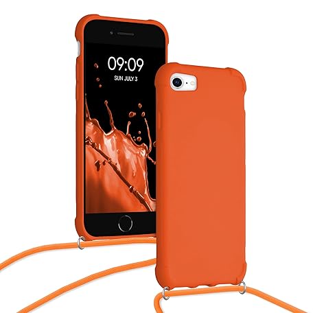 • kwmobile Smartphone Shoulder for Apple iPhone SE3 / iPhone SE2 / iPhone SE (2022) / iPhone SE (2020) / iPhone 8 / iPhone 7 Case - TPU Cover with Shoulder Strap Fruity Orange