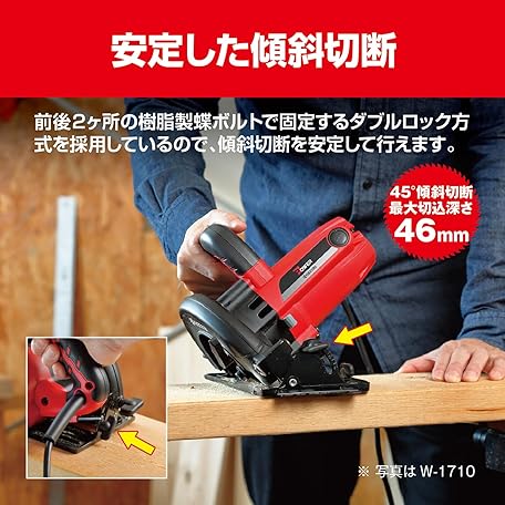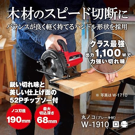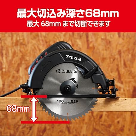 Thông tin sản phẩm 京セラ(Kyocera) 旧リョービ 丸ノコ W-1910 617501A 【滑りにくく手にフィットするソフトグリップで作業がしやすくDIYに最適】 ノコ刃径190mm 最大切込深さ (90度)68mm・(45度)46mm ソーガイドフェンス付