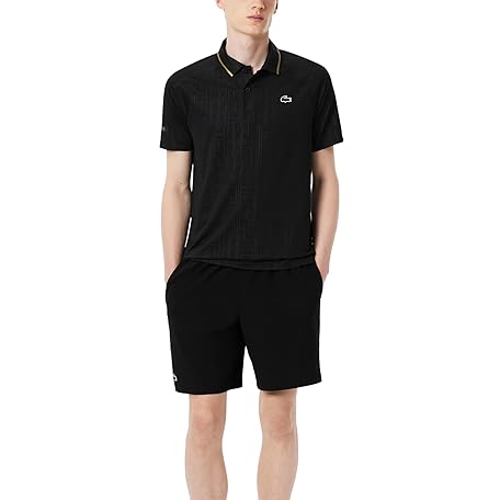 Lacoste Sports Ultra-Dry Branded Stripe Tennis Polo for Men, Black, XL