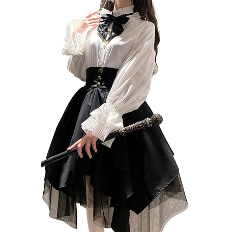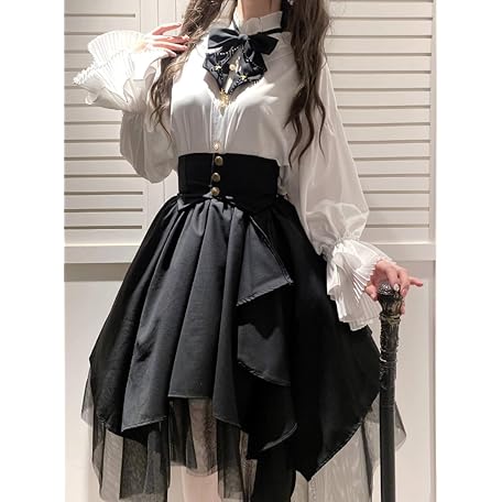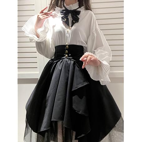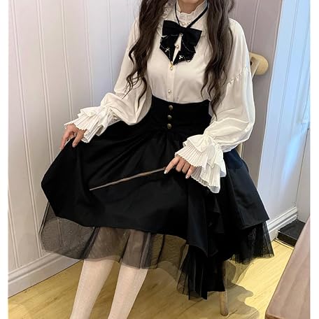 • Lady Lazy Claroli Blouse, Ribbon, Skirt, 3-Piece Set, Cosplay, White, Black, Asime, Knee-Length