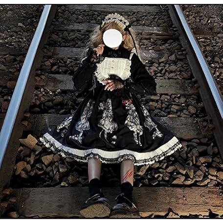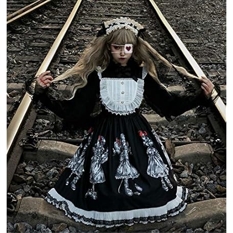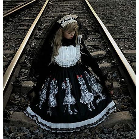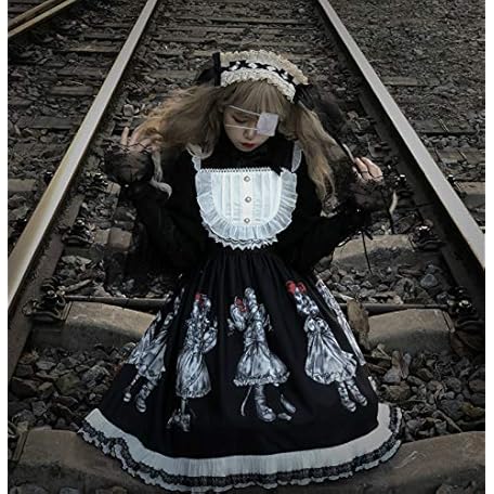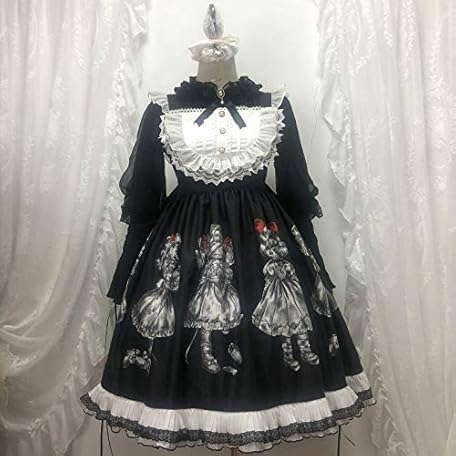 • Lady Lazy Gothic Lolita Jumper Skirt, Dress, Dress, Cosplay, Knee-Length, Black, Doll Pattern