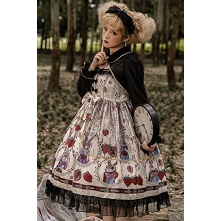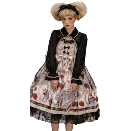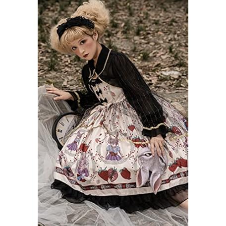 Lady Lazy Lolita Jumper Skirt, One Piece, Gothic Loli, Cosplay Dress, Knee Length, Rabbit Pattern (White)
