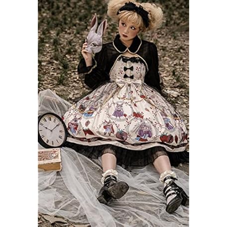 • Lady Lazy Lolita Jumper Skirt, One Piece, Gothic Loli, Cosplay Dress, Knee Length, Rabbit Pattern (White)