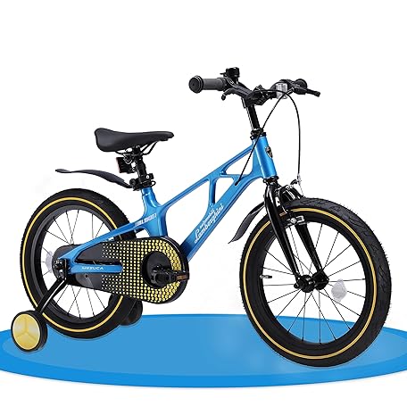 Lamborghini Pedal Bicycle, Junior, Kids' Bike, Authorized Dealer License, 14/16/18 Inch Ultra Lightweight Magnesium Material Frame, Auxiliary Wheels, Kickstand, Mudflaps Standard Equipment, Fits 3 to
