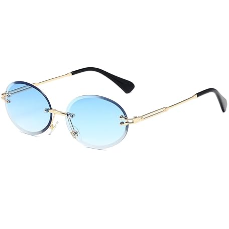 LASPOR Retro Oval Sunglasses Women Men Fashion Vintage Gold Metal Frameless Rimless Glasses Tint Lens UV400 Protection, Blue, M, Blue, M, blue, M