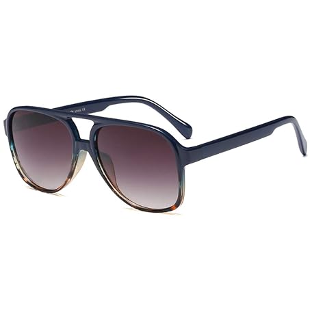 • LASPOR Vintage Retro Sunglasses Unisex Large Frame Classic 70s Glasses Square Aviator Shade UV400 Protection, Dark blue and leopard, L