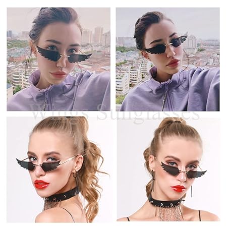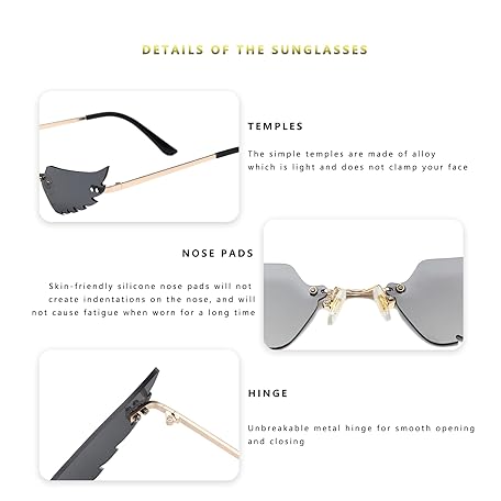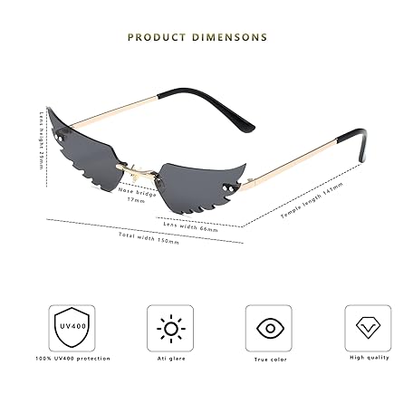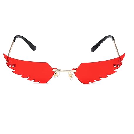 LASPOR Wing Shape Lenses Rimless Sunglasses for Women Men Party Glasses, Red, 66mm