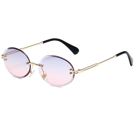 LASPOR Women Men Retro Oval Sunglasses Fashion Vintage Gold Metal Frameless Rimless Glasses Tint Lens UV400 Protection, Grey Pink Gradient, M, Gray Pink Gradient, M, Gray Pink Gradient, M