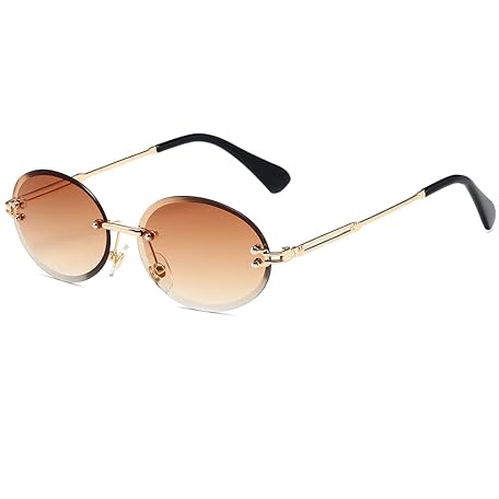 LASPOR Women Men Retro Oval Sunglasses Fashion Vintage Gold Metal Frameless Rimless Glasses Tint Lens UV400 Protection,Tea Brown,M,Tea Brown.,M, Tea Brown, M