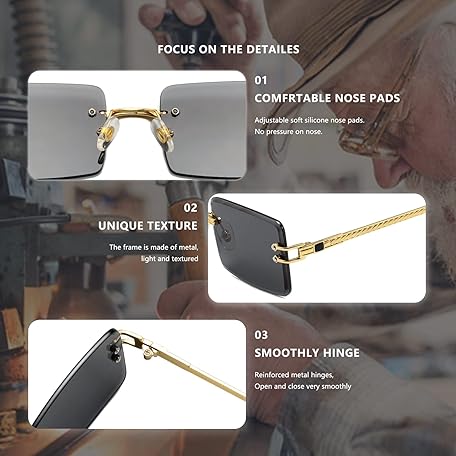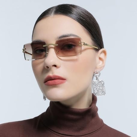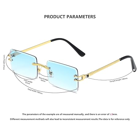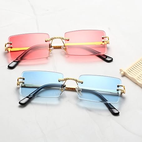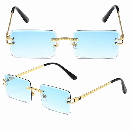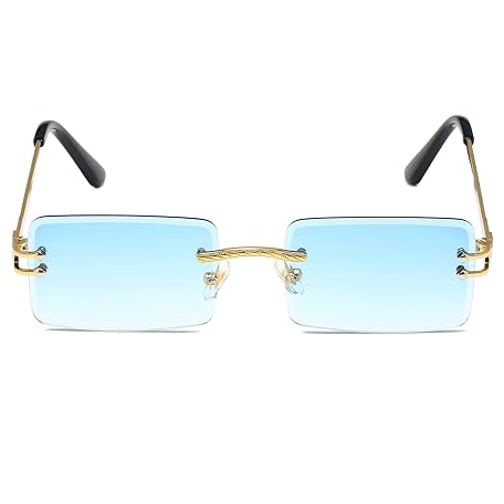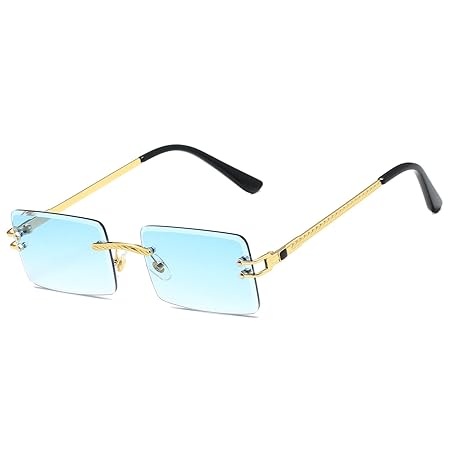 • LASPOR Y2K リムレス長方形サングラス レディース メンズ スクエア トレンディ 90年代サングラス UV400, ブルー, 140mm