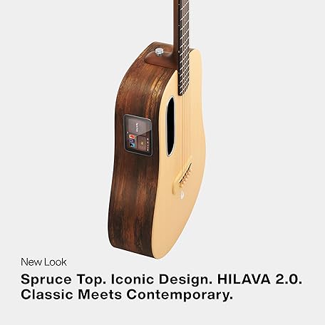 Thông tin sản phẩm LAVA ME 4 Solid Spruce Top Series, Hilava 2.0 Smart Acoustic Electric Guitar, Right Hand, with 3.5" Touch Screen, Ideal Bag, Woodgrain Brown/Burly Wood, 36"