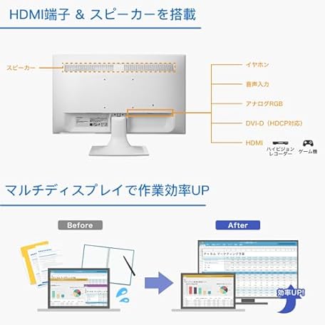 【整備済み品】 アイ・オー・データ機器 LCD-MF211EDW(白) 20.7インチワイド/LED液晶モニタ/1920x1080/フルHD/VGA DVI HDMI/HDCP/フリッカーレス/ブルーライト/スピーカー内蔵/Switch·PS対応