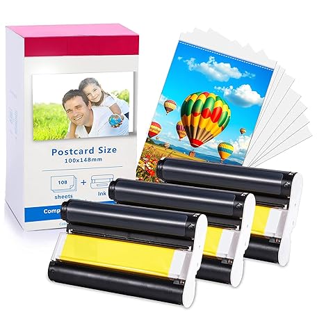 • LCL Compatible KP-108IN Canon SELPHY CP1300 108 Photo Paper (100x148mm) & 3 Ink Cassette Aftermarket Postcard Size CP1200 CP1500 CP Series Compact Photo Printer